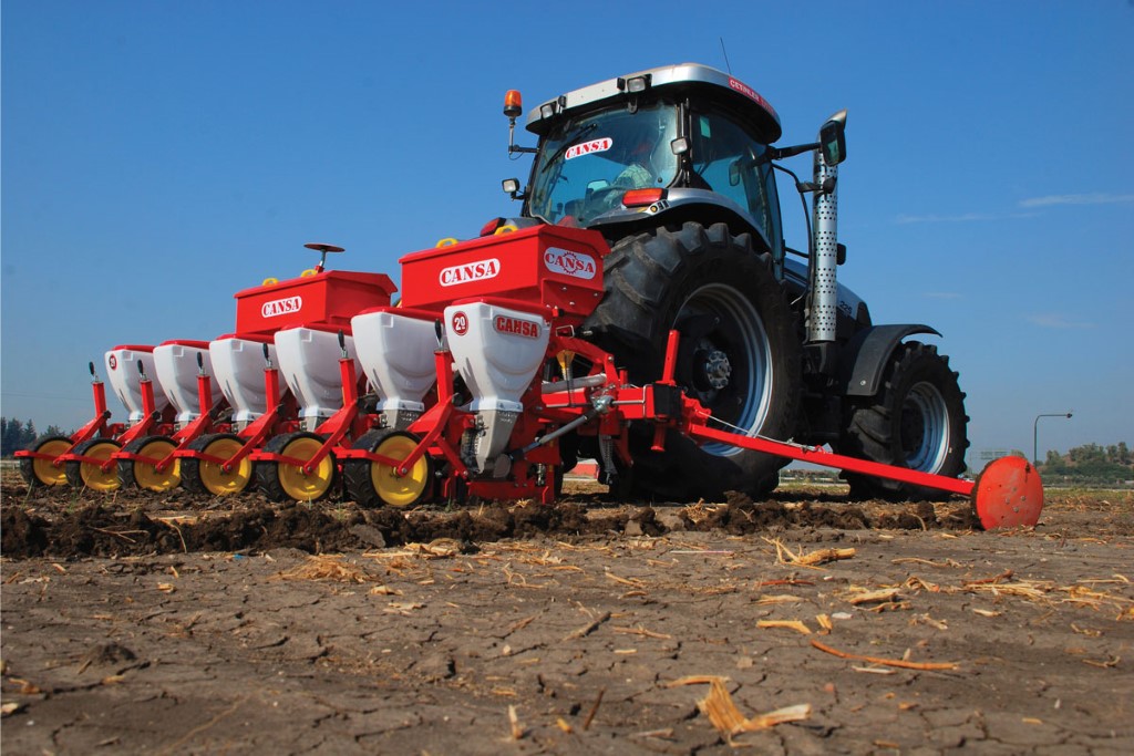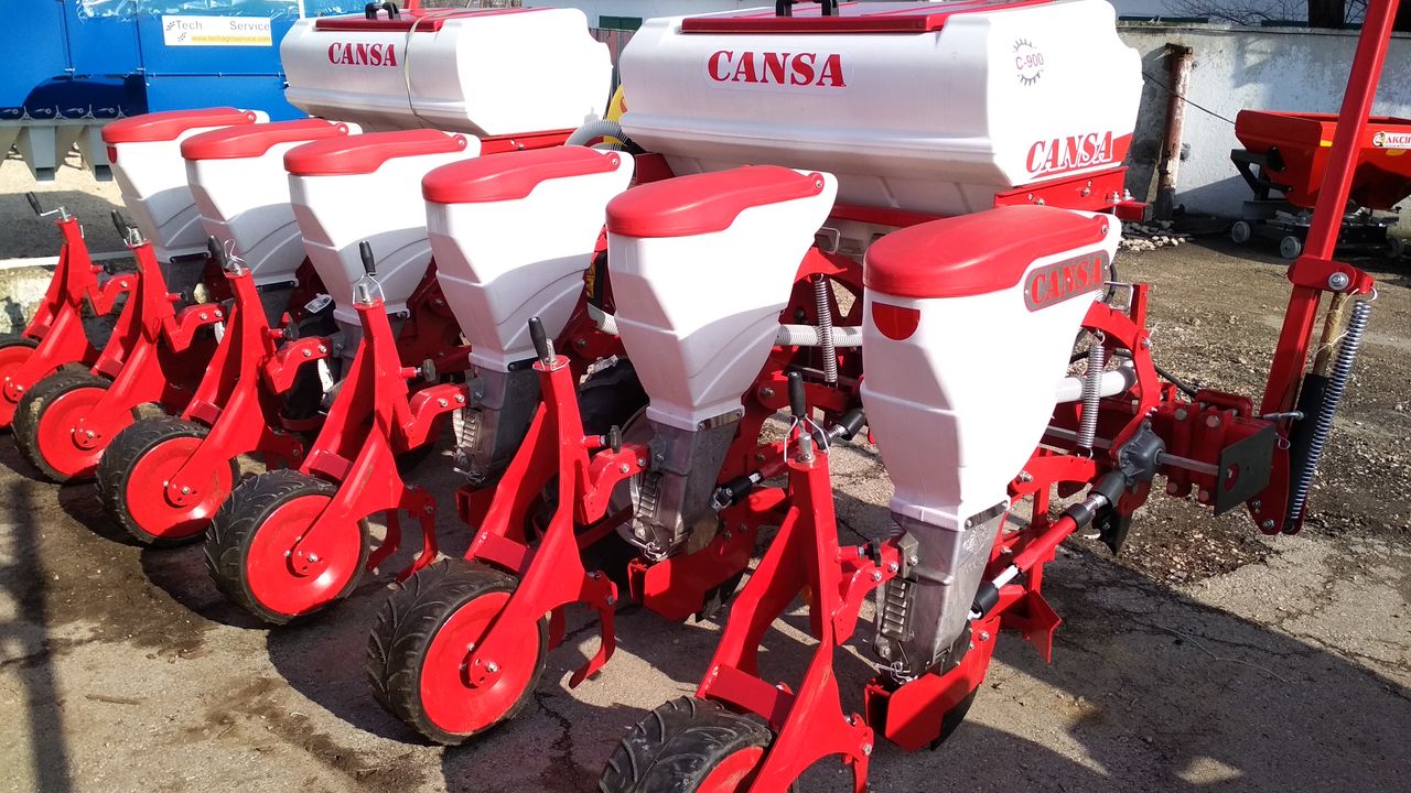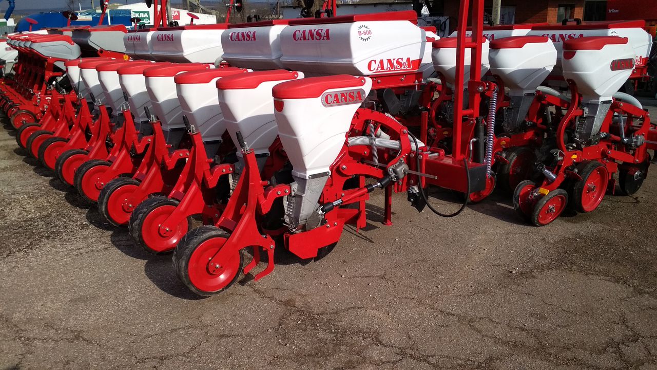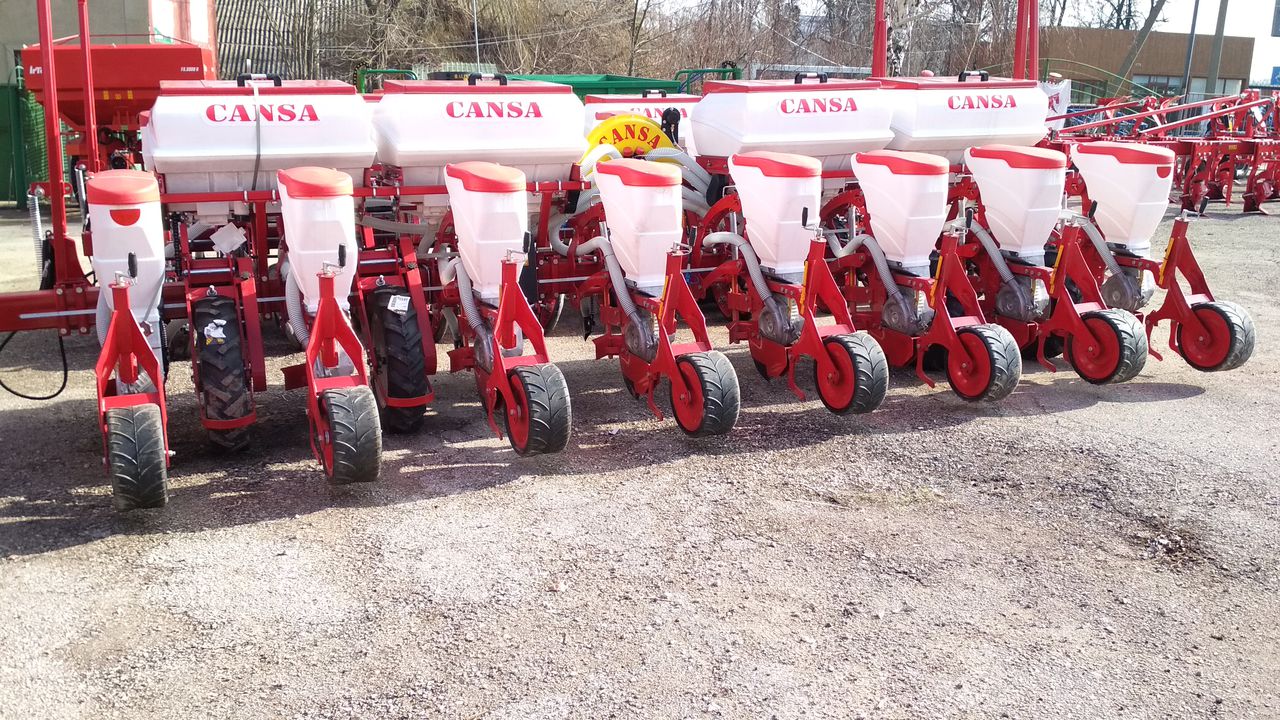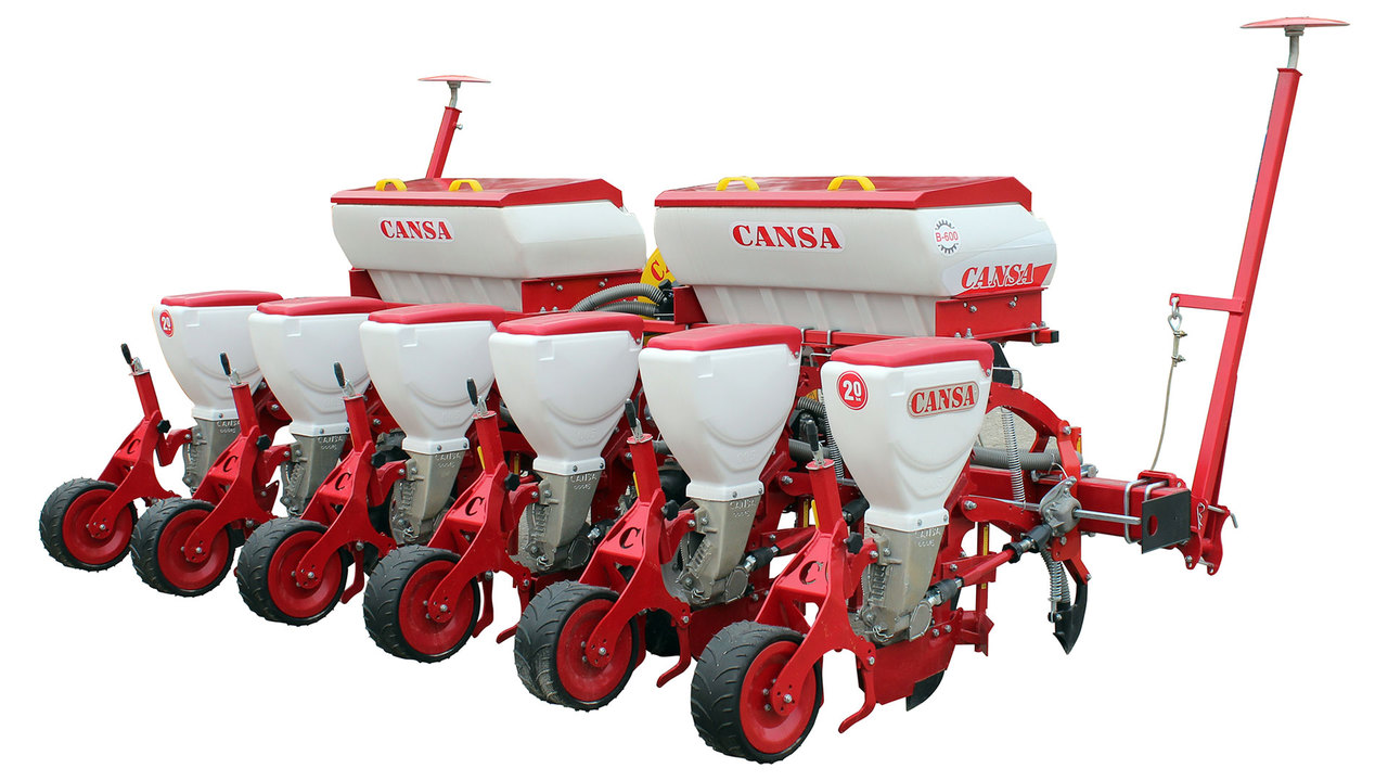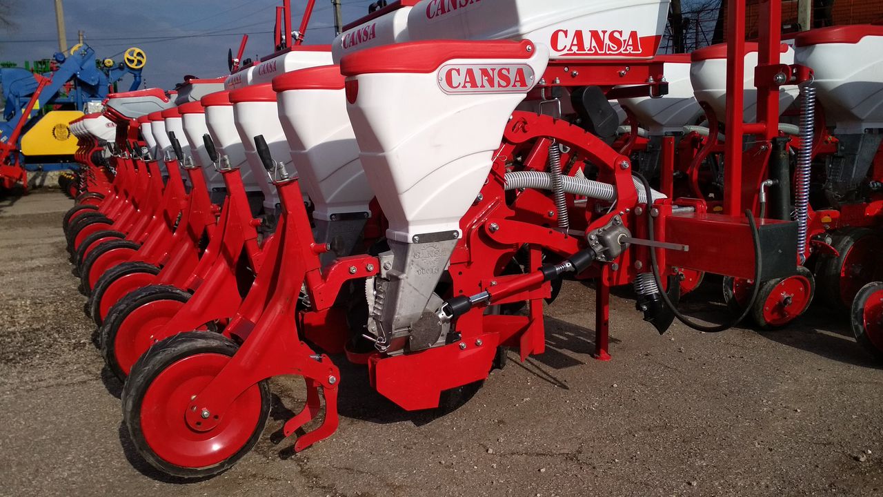 Универсальные пневматические сеялки точного высева CANSA (анкерные) - предназначены для точного высева калиброванных и некалиброванных семян кукурузы, подсолнечника, клещевины, сорго, сои, а также семян кормовых бобов, фасоли, люпина с одновременным, раздельным от семян внесением гранулированных минеральных удобрений анкерным сошником и прикатыванием почвы сплошным прикатывающим колесом.