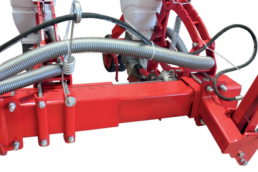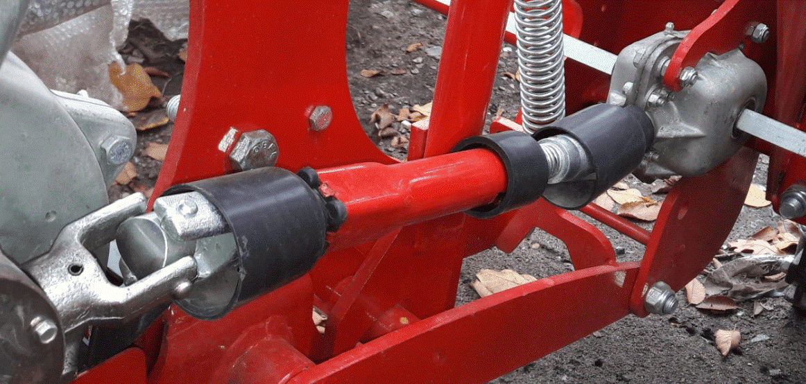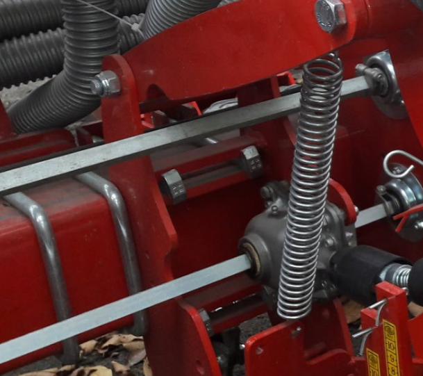 - Параллелограммная навеска высевающего аппарата, позволяют копировать рельеф поля, расстояние от семенного ложа и глубина заделки удобрений может регулироваться, для оказания нужного давления секции на почву, предусмотрены две пружины.
