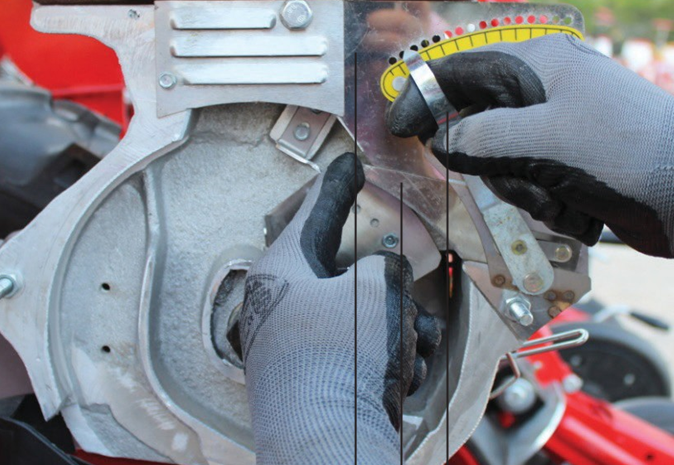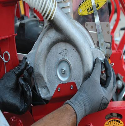 - Внутренняя часть высевающего аппарата оснащена износостойкой уплотнительной прокладкой, обеспечивающей вакуум и тыльным диском суппорта, предотвращающим выгибание диска под давлением вакуума.
