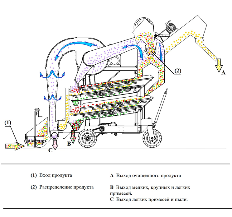 - очистительный механизм для решет – может работать с сильно загрязненным зерном;
