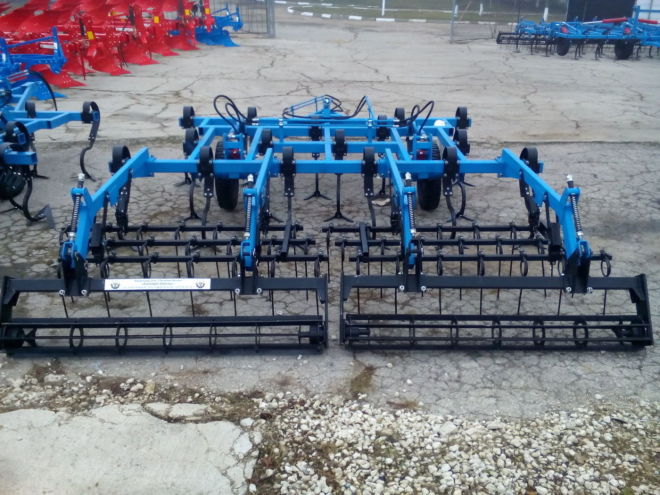 - Трехсекционная рама плавающего типа и тандемная подвеска колес позволяют отлично копировать рельеф поля, избегая пропусков. Широкая растановка лап и увеличенный клиренс подрамного пространства полностью исключают забивание.