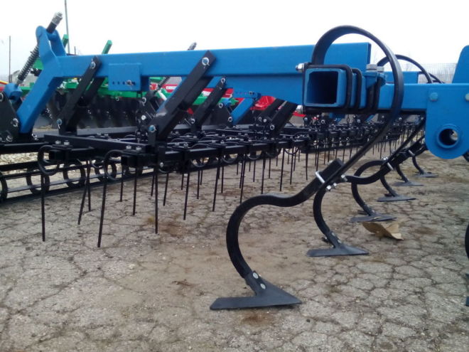 - Лапы со стойкой и пружинная подвеска создают при работе культиватора микроколебания, способствующие крошению комьев по естественным границам фракций.