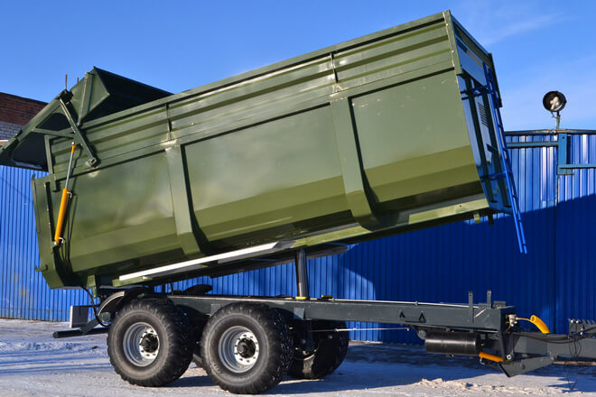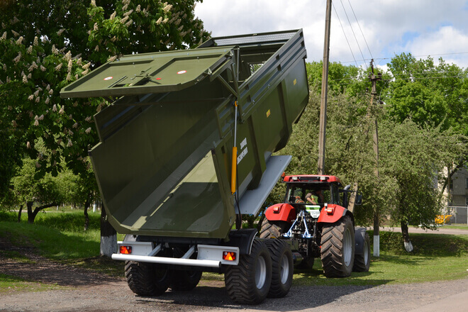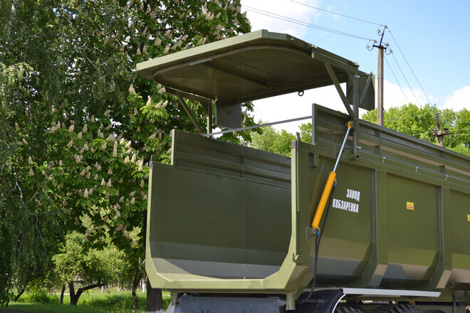 - Гидравлический задний борт с шибером для дозированной выгрузки сыпучих матереалов