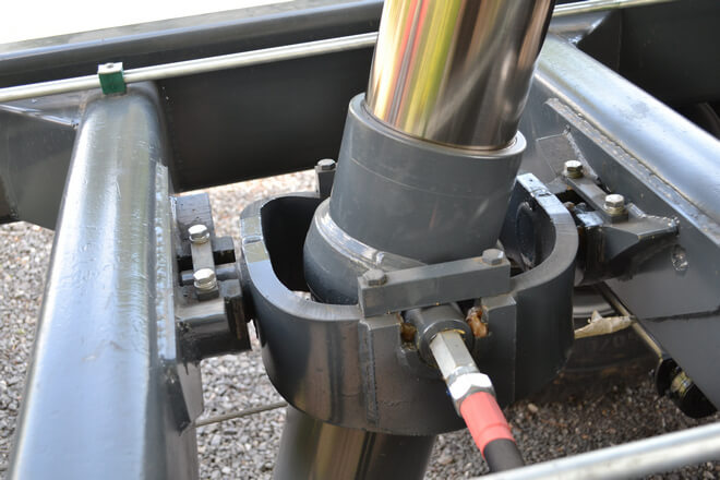 - Передняя и задняя оси подруливающие, задняя ось стопориться гидравлически для движения задним ходом.