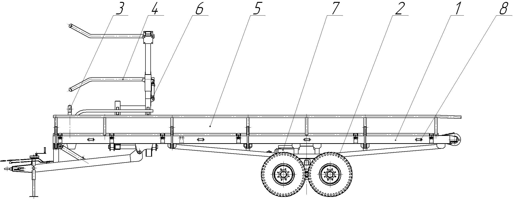 - привод рабочих органов погрузчика-транспортировщика осуществляется от гидросистемы трактора через гидромотор привода цепей реверсивной передней толкающей стенки, гидроцилиндр наклона платформы и гидроцилиндры погрузчика.