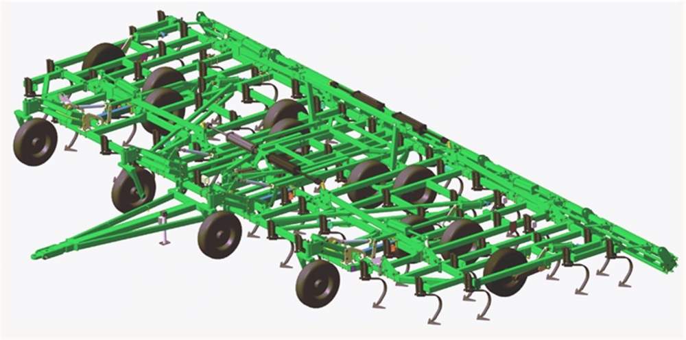 - Двойное складывание боковых секций позволяет осуществлять компактное транспортировки культиватору.