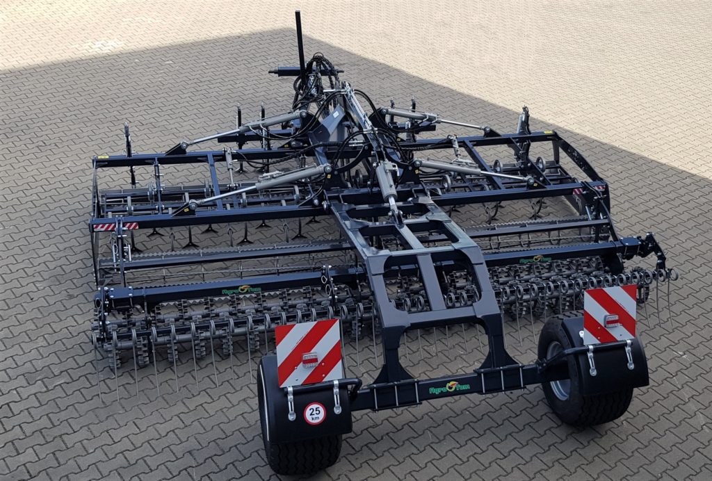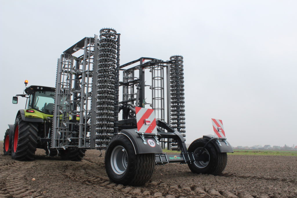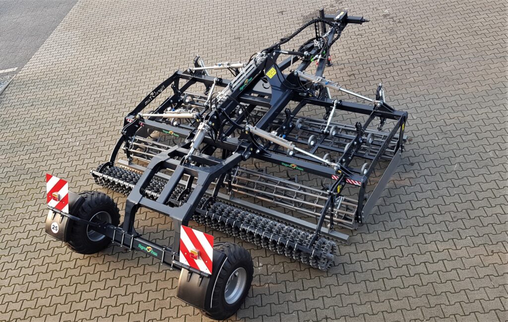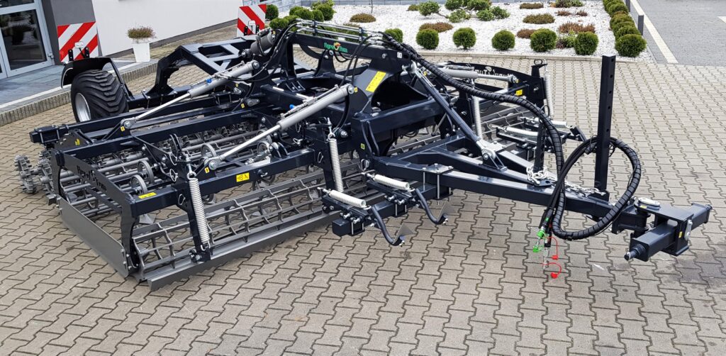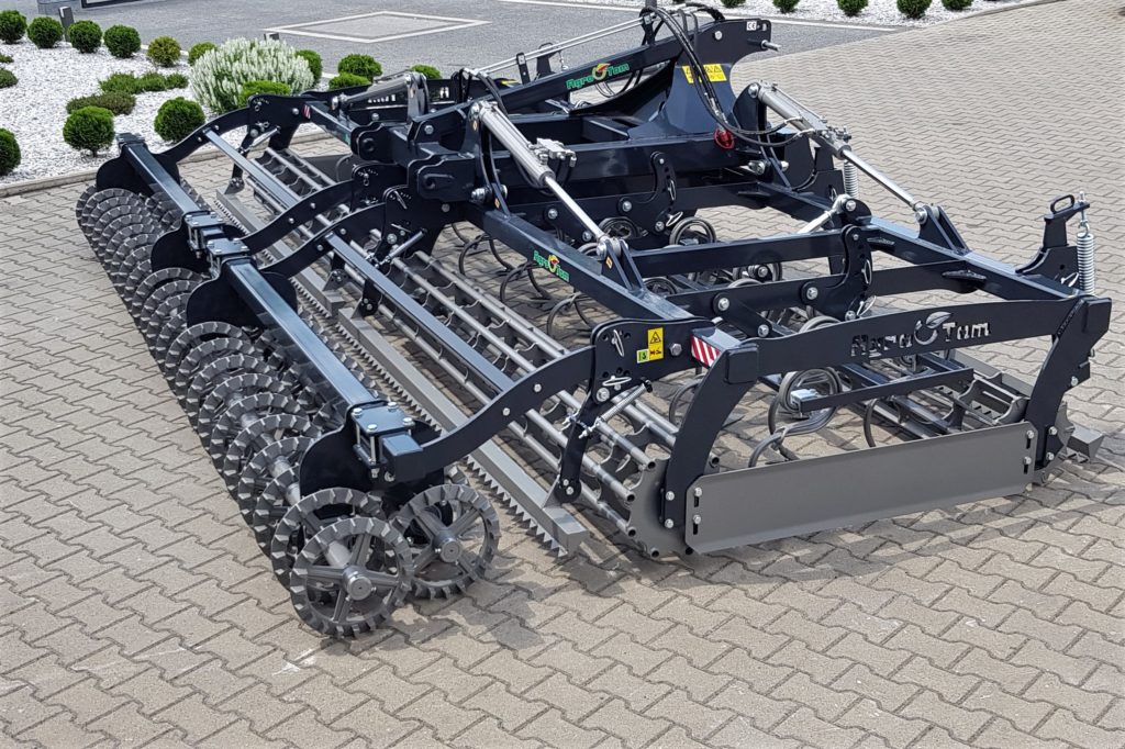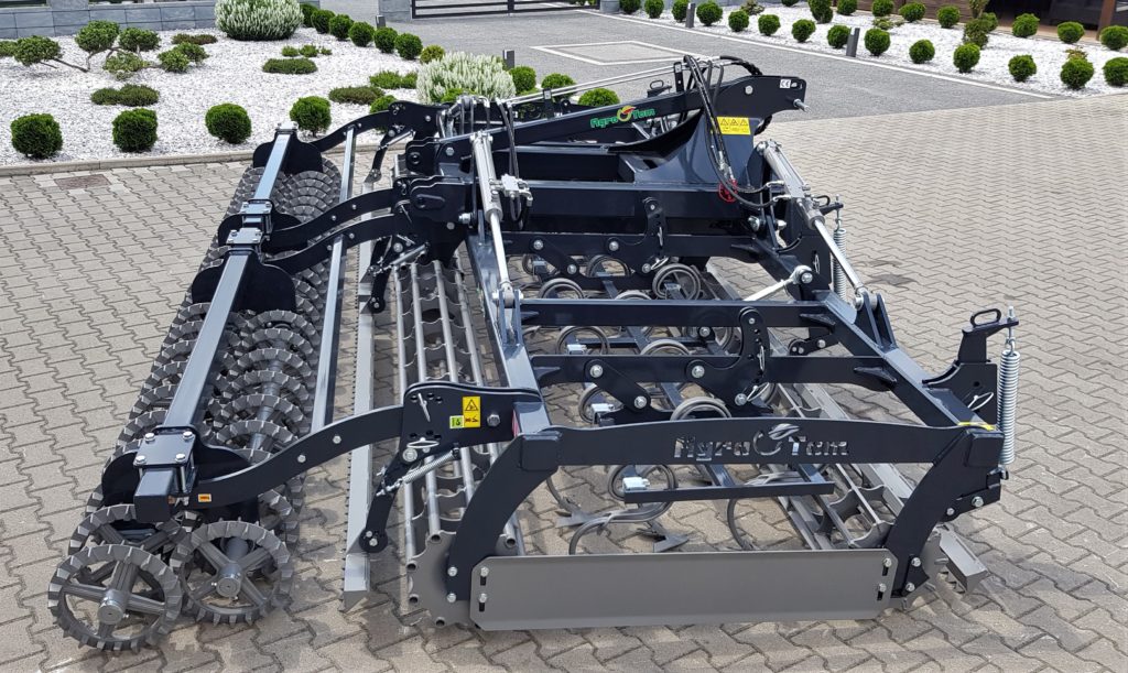 Он имеет очень хорошие рабочие параметры благодаря большому весу и большому количеству стоек для культивации. В базовой версии есть следующие рабочие элементы: выравнивающая планка с переменной рабочей высотой и регулируемым углом атаки, каток с плоской штангой диаметром 370 мм, три ряда стоек, второй ровный каток диаметром 370 мм, второй выравнивающий каток, каток crosskill. Все валы смонтированы на не требующих обслуживания ступицах, что значительно укорачивает и облегчает подготовку машины к работе.