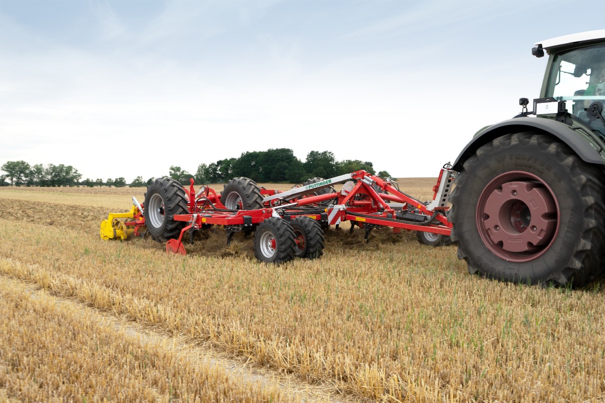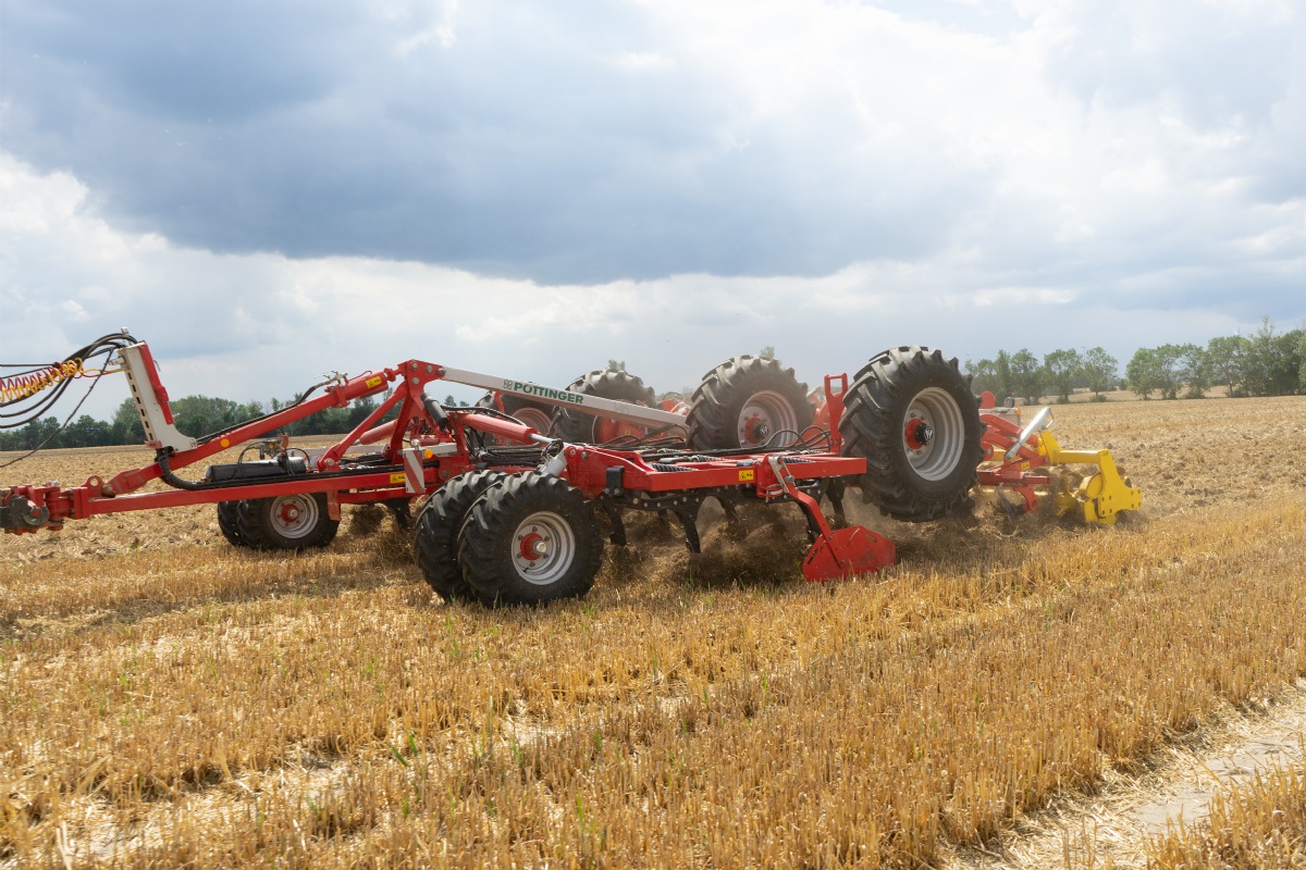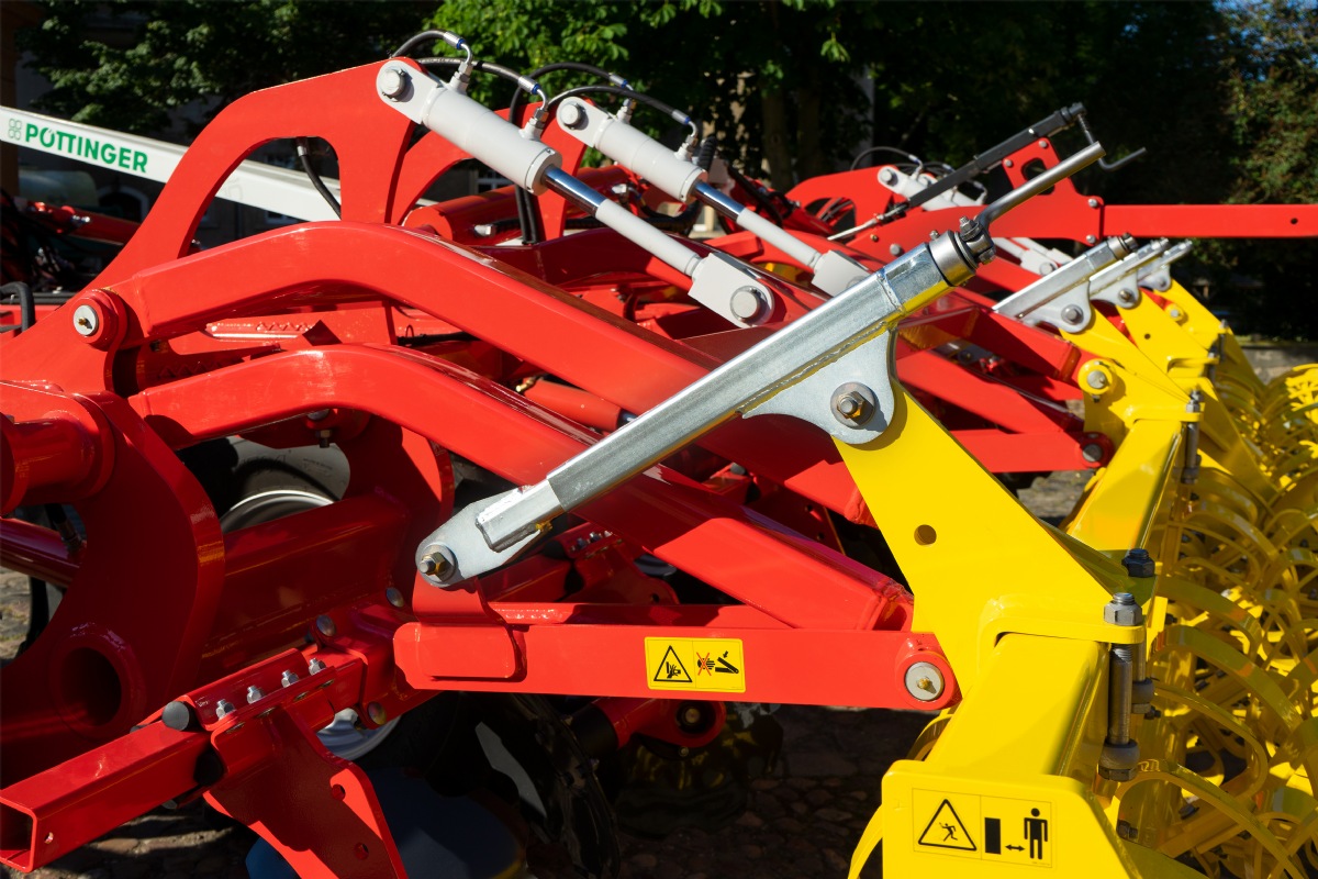 Для быстрой и точной адаптации ко всем типам почвы и любым рабочим условиям Pöttinger вводит полную гидравлическую регулировку глубины в стандартной конфигурации культиватора TERRIA. Большие передние поворотные колеса и задний каток обеспечивают желаемую глубину и сохраняют выбранную рабочую глубину. Дышло оснащено гидроцилиндром, обеспечивающим копирование местности по ходу движения. Кроме того, этот цилиндр может улучшить тягу с помощью проставок, которые могут быть вставлены в его шток, и могут передавать вес культиватора на заднюю ось трактора.