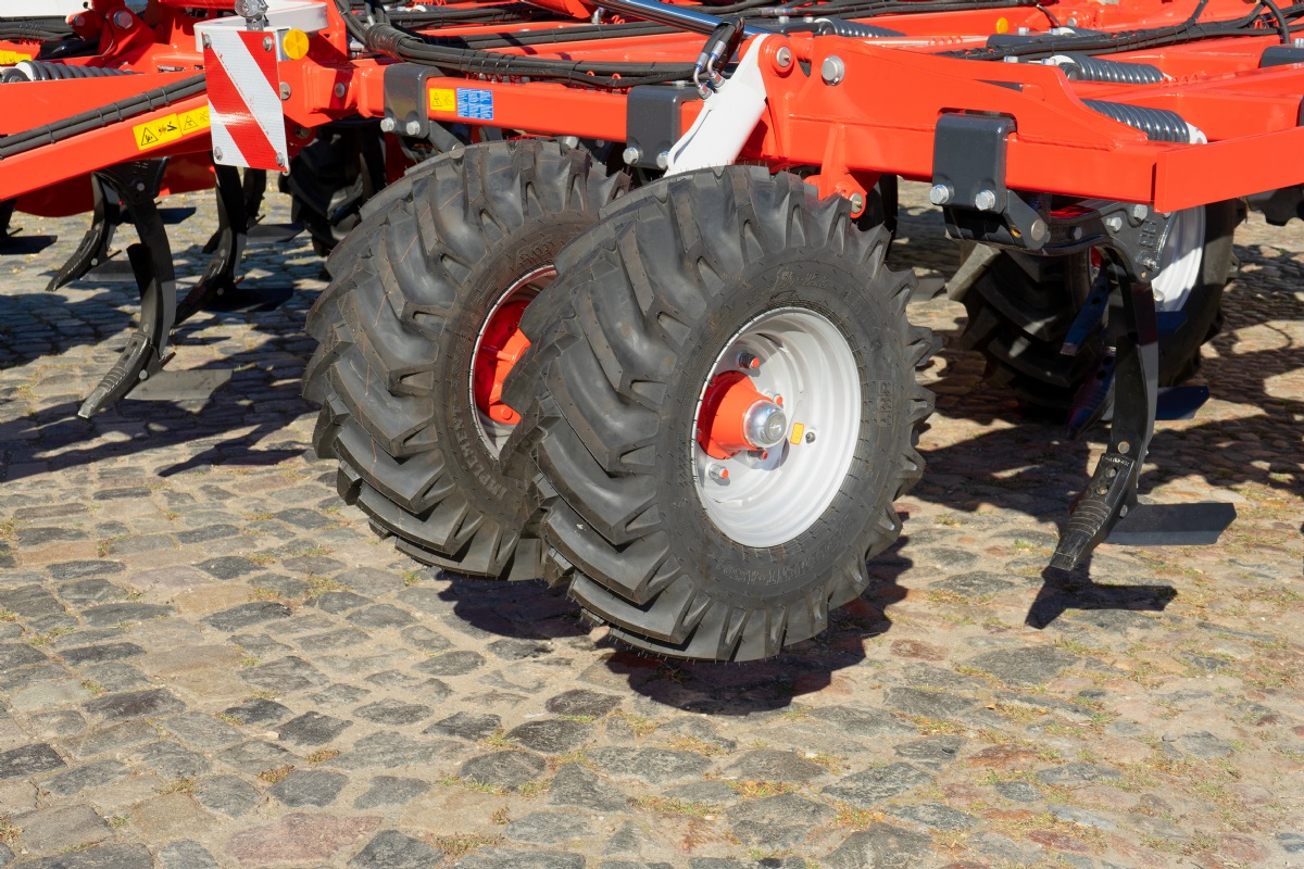 Чтобы обеспечить максимально широкий радиус поворота, колеса были интегрированы в рабочую зону, что привело к уменьшению общей длины. Агрегат комплектуется либо двухколесным шасси, либо, как опция, четырехколесным шасси, в зависимости от ширины захвата. Это обеспечивает идеальное распределение веса и отличную защиту почвы.