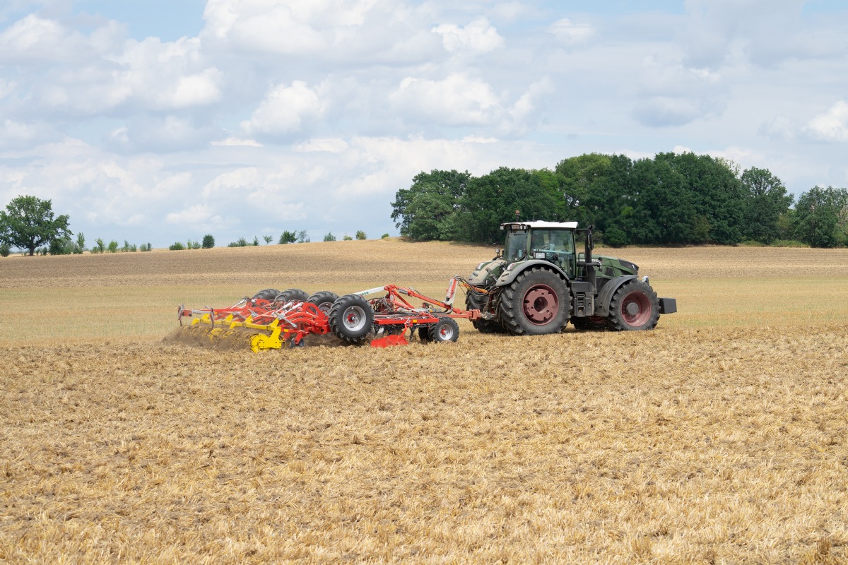 Рабочие органы прицепного культиватора TERRIA расположены симметрично линии тяги. Это обеспечивает равномерность работы даже в сложных условиях, а также стабильность направления, полное рыхление почвы и идеальное перемешивание растительных остатков. Чтобы гарантировать постоянный поток обрабатываемой почвы даже при большом количестве соломы и растительных остатков, культиватор TERRIA имеет большой клиренс. Возможна рабочая глубина от 5 до 35 см.