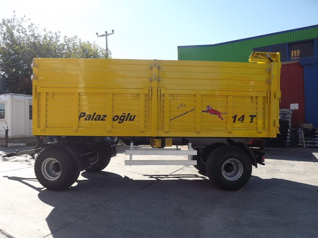 Двухосные прицепы идеально подходят для сельского хозяйства, а также для общего использования. Прицепы оборудованы трехсторонним самосвальным механизмом. Задняя стойка позволяет легко выгружать сырье, сельскохозяйственную продукцию и строительные материалы. Прочная рама рассчитана на большие нагрузки и обеспечивает максимальную жесткость на кручение. Параболическая подвеска обеспечивает равномерную нагрузку на ось при быстрой езде. При этом безопасность опрокидывания выше.