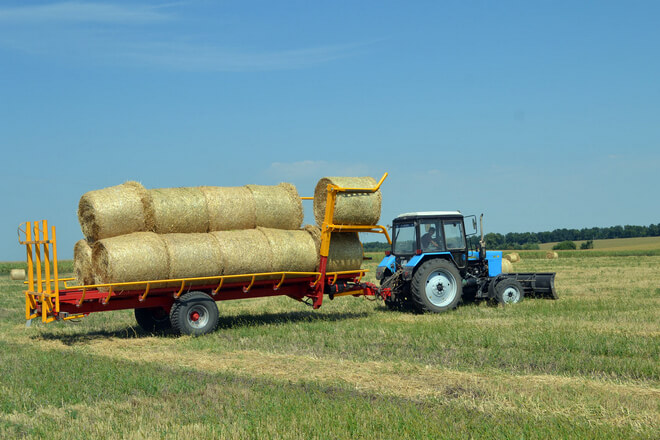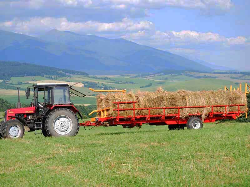 Принцип работы ПТ-18: подбор тюка и загрузка проводится вилочным захватом, который с помощью гидроцилиндра поднимает тюк на платформу. Передняя стенка передвигает тюк назад. Разгрузка производится методом сдвига тюков передней стенкой, через задний гидравлически-открывающийся борт. Тюки легко скользят по направляющим, сохраняя форму и целостность. Цепной транспортер находится в закрытой нише, что полностью исключает контакт цепи с тюками и повреждение ниток. Агрегатируется тюковоз с тракторами: МТЗ, ЮМЗ.