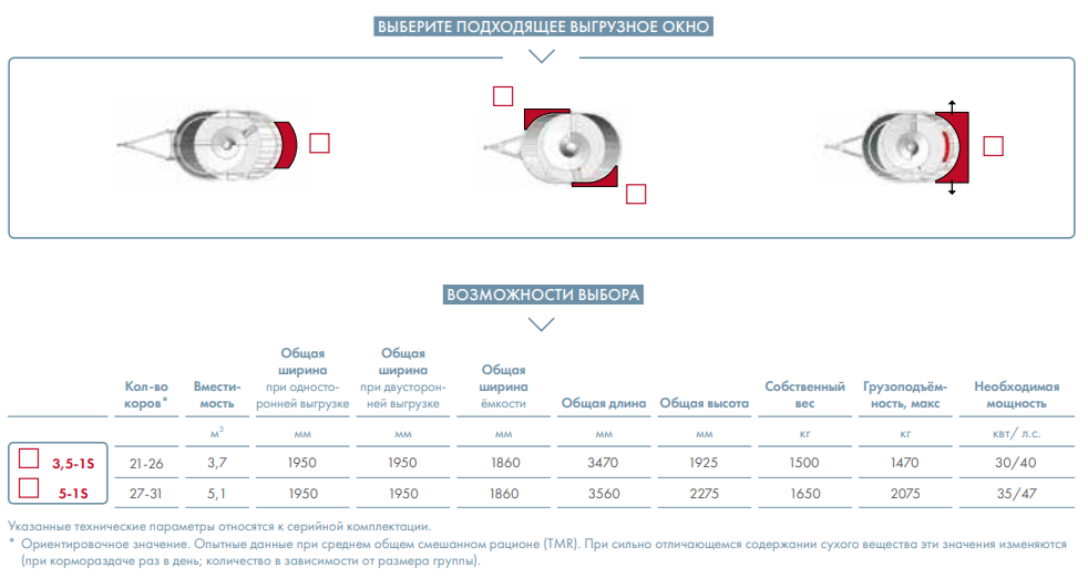 Большой в деталях, но легко приспосабливающийся в размерах. Наши кормосмесители серии V-Mix оборудованы мощным смесительным шнеком, легко адаптирующимся к изменению высоты и ширины ёмкости смесителя. Различные способы раздачи корма через выгрузные окна, вертикально переставляемые поперечные транспортёры, различные виды скатных досок и боковых элеваторов дают нам возможность раздать корм на всевозможные варианты кормовых столов. Машина в такой комплектации соответствует задаче.
