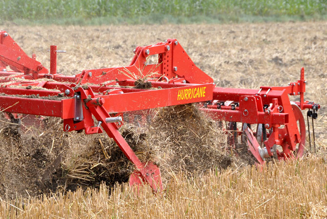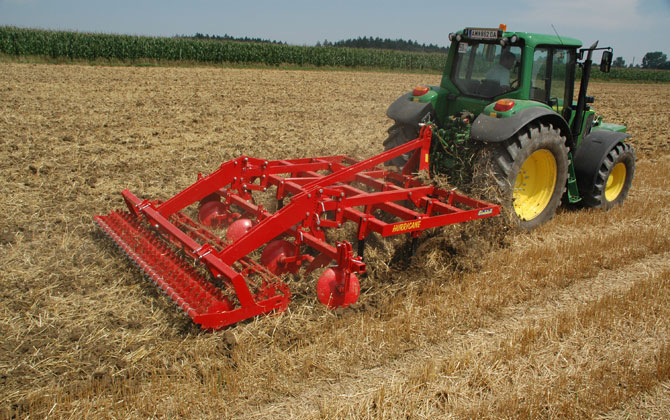 Универсальный культиватор HURRICANE – чрезвычайно компактное и манёвренное универсальное орудие пригодное для мелкой стерневой обработки непосредственно после уборки, а также для более глубокой обработки почвы для рыхления уплотненных горизонтов, для интенсивной подготовки семенного ложа, заделки, перемешивания удобрений и пожнивных остатков (органической массы).